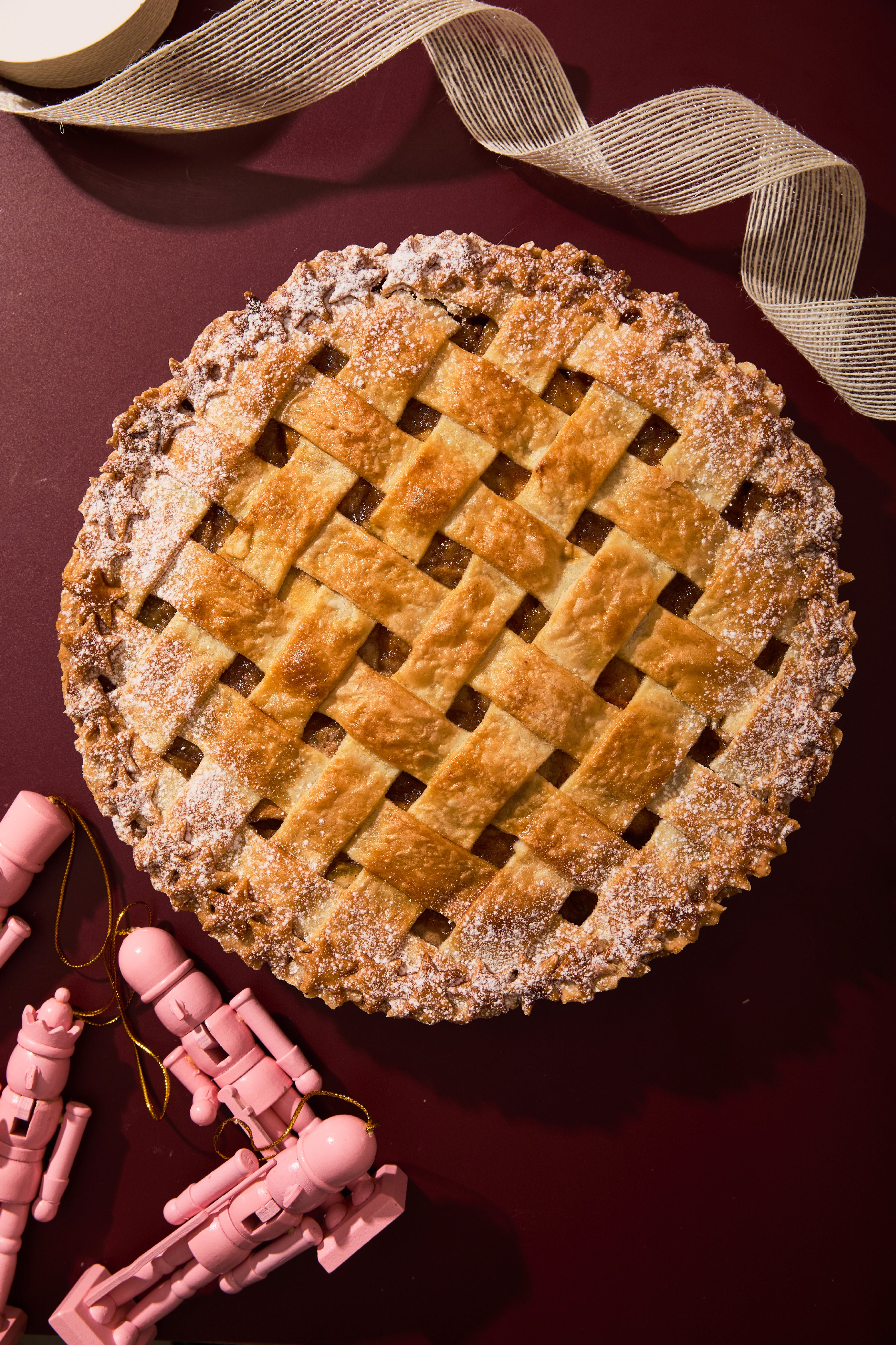 Clásico pie de manzana casero especiado con decoración navideña. 12-15 porciones.